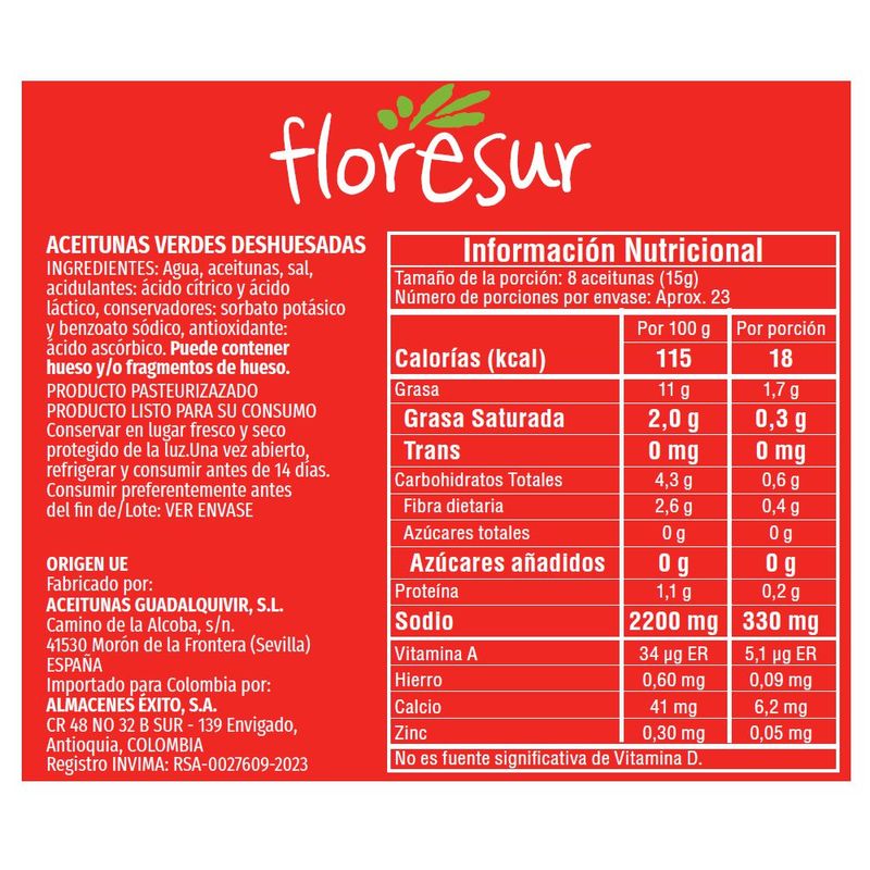 Aceitunas FLORESUR deshuesada en bolsa (350 gr)