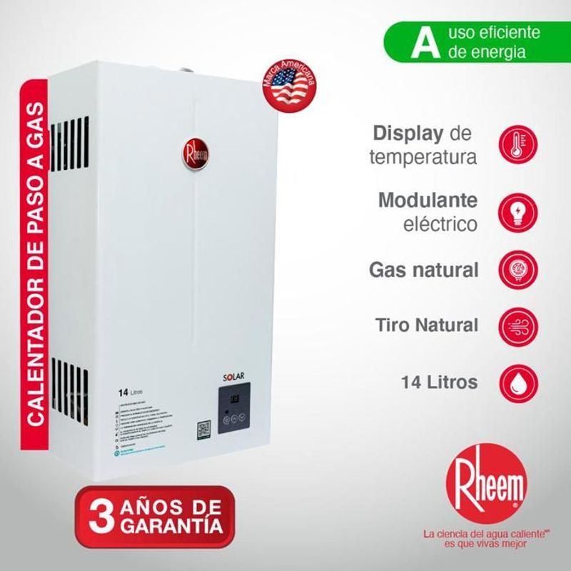 Calentador De Agua 14Lt Gas Natural Tiro Natural Digital Rheem