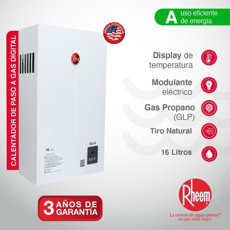 Calentador De Agua 16Lt Gas Propano Tiro Natural Digital Rheem