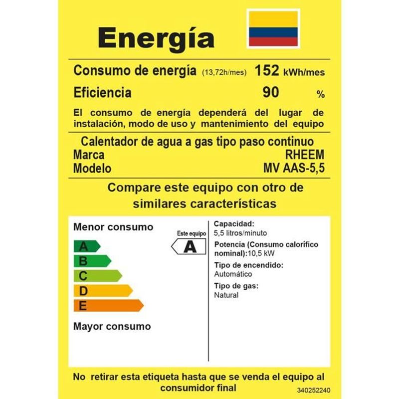 Calentador De Agua 5.5Lt Gas Natural Tiro Natural Rheem