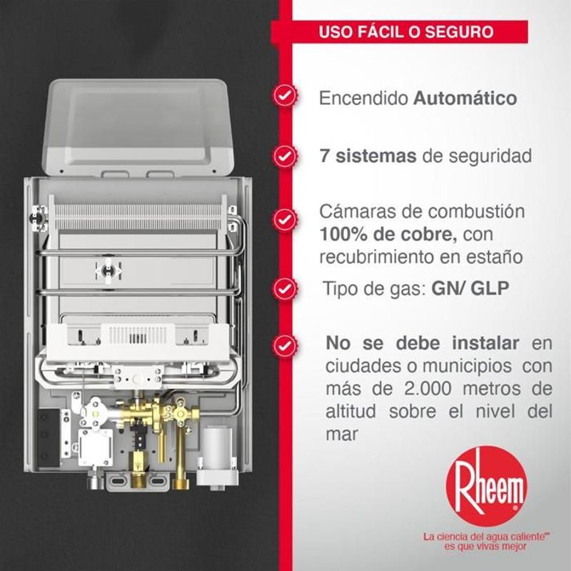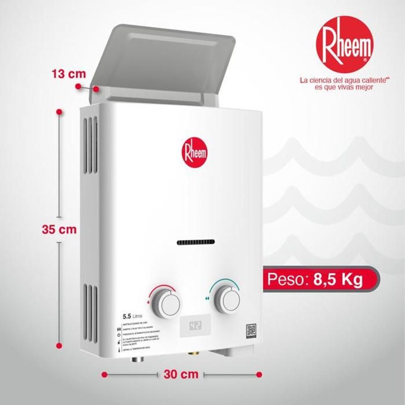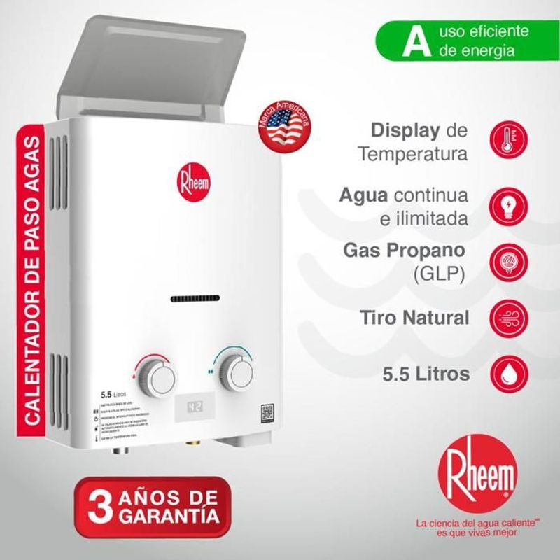 Calentador De Agua 5.5Lt Gas Propano Tiro Natural Rheem