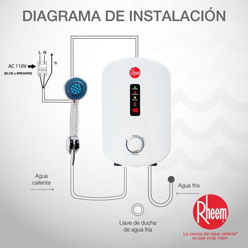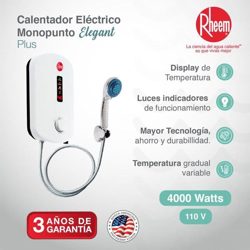 Calentador De Agua Eléctrico Elegant Plus 110V 4Kw Rheem